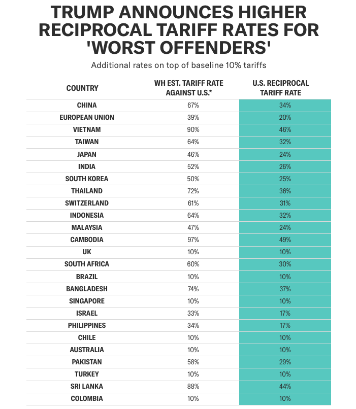 - April 9: On this date, individualized higher tariffs will take effect based on each country’s trade deficit with the U.S. These tariffs will be calculated according to trade imbalances, with countries that run significant trade deficits with the U.S. facing steeper rates.